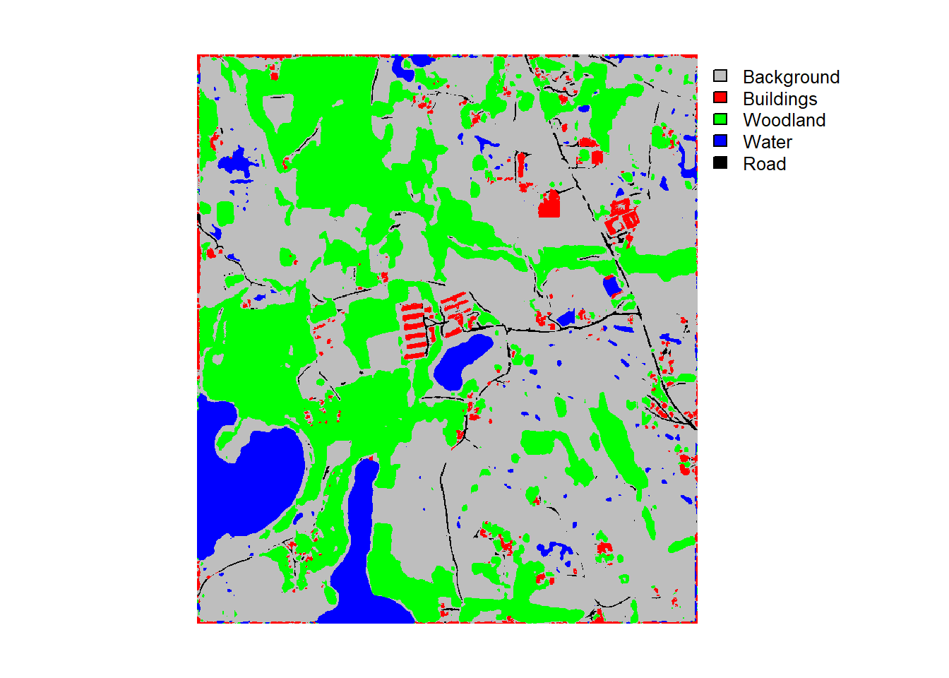 cNames=c("Background", "Buildings", "Woodland", "water", "road"),